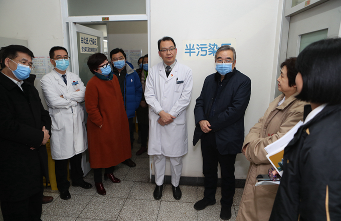 毛群安听取汇报,并向宣武医院医务工作者表达慰问。