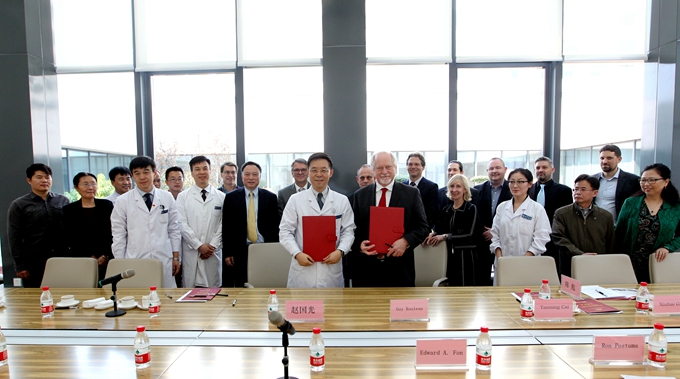 10月12日,我院与加拿大麦吉尔大学蒙特利尔神经学研究所签署了战略合作协议,未来双方将共同致力于帕金森病、老年痴呆、运动神经元疾病的发病机制、遗传学、影像、干细胞治疗等神经系统疾病领域的研究。蒙特利尔神经学研究所一行专家还参观了我院标志性颅脑型建筑CHINI-INI,对我院现代化的管理理念和医疗设施给予高度评价。