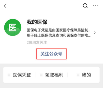 步骤一:在微信中搜索公众号“我的医保”,关注该公众号,并按步骤激活领取医保电子凭证。