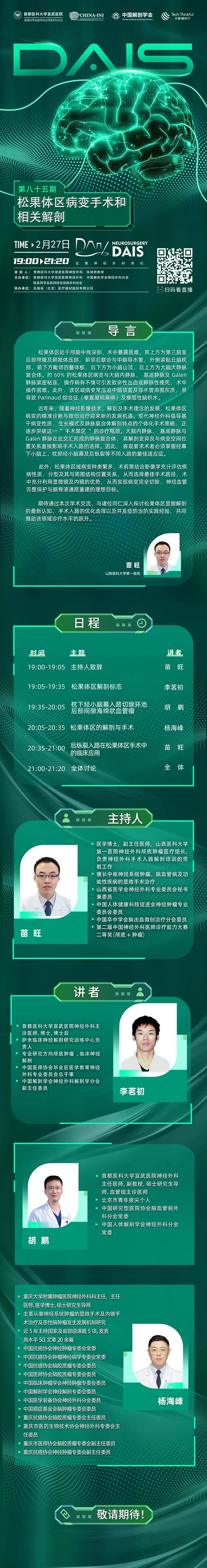 【2月27日晚19:00直播】DAIS 2025 第八十五期 -- 松果体区病变手术和相关解剖